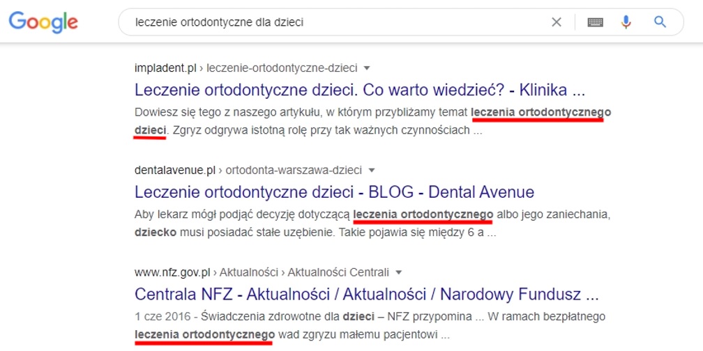 This is not an easy task because it requires, among others: analyzing the content you already have, asking yourself about patients' expectations and checking the potential of selected key phrases in the search engine, i.e. checking how many user queries appear monthly in Google. It can be assumed that even without such actions, the website will contain some key phrases, but a lucky break is not enough to appear on the first page of Google. SEO activities for dental offices require a specific and consistently applied strategy.