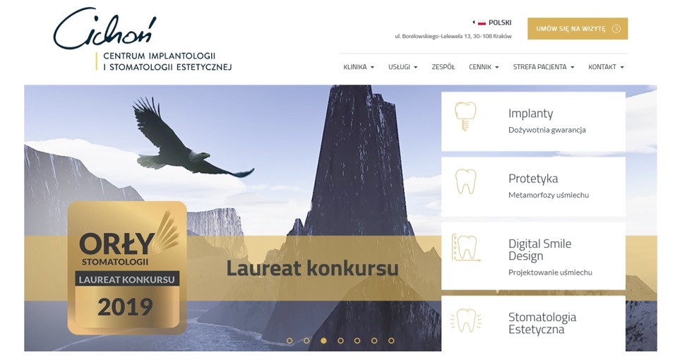 Example: Presentation of distinction on the website of the Cichoń Implantology and Aesthetic Dentistry Center