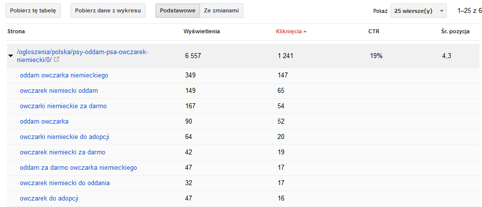 Expand a given subpage and analyze the terms for which you appear. In many cases, the subpage will be displayed for terms for which it is not properly optimized. Think about changing the meta title and description to use as many queries as possible and direct users' attention to issues that are important to you. I once conducted a short test for several dozen subpages on one of the advertising websites.