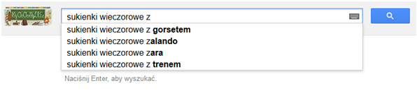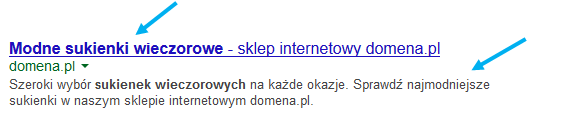 The phrases specified in the table above, of course, do not limit the pool of keywords for which our website can appear in Google. For example, by adding the phrase "internet" we also have the opportunity to appear for inquiries about evening dresses online store or dresses online store and much more. Of course, optimizing only these two elements and using keywords in them will not guarantee you high positions, many factors contribute to this state of affairs.