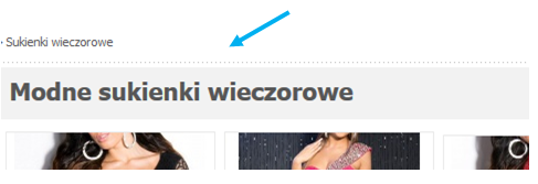 Having a list of URL addresses of subpages that we want to optimizeanalyzed together with the list of keywords assigned to them, we can move on to the next stage, which is the optimization of website elements. Staying on the topic of women's clothing, we will quickly optimize the evening dresses category page.