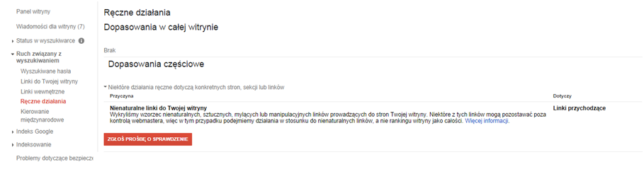 Nie zrażaj się przy pierwszej negatywnej odpowiedzi, czasem będziesz musiał wysłać kilka zgłoszeń i usunąć większą ilość odnośników aby pozbyć się ręcznej kary.