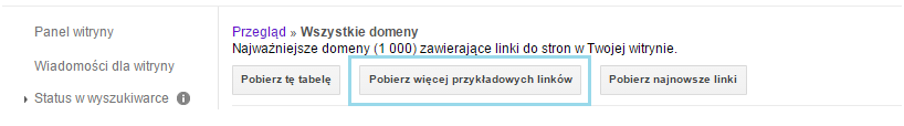 Następnie klikamy w przycisk Pobierz więcej przykładowych linków i zapisujemy plik w formacie CSV.