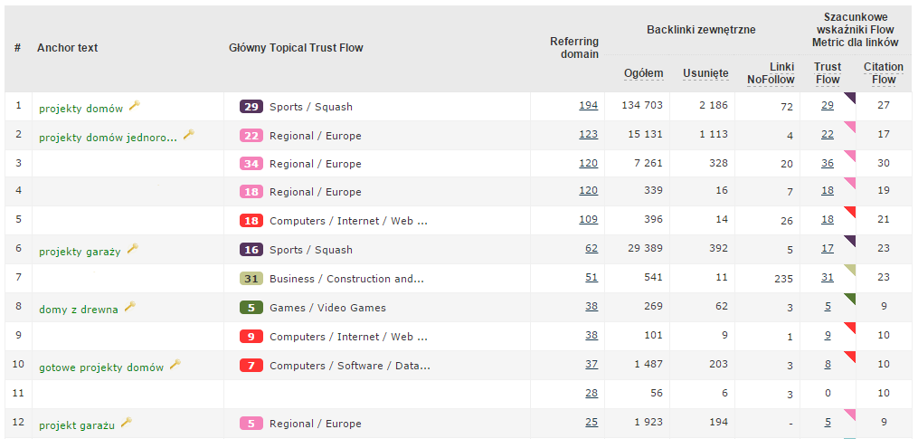 Kolejnym krokiem, który w całych działaniach naprawczych jest najistotniejszy jest odpowiednia analiza linków zwrotnych. Czym kierować się przy określaniu jakości danego odnośnika? Jakie linki są w oczach Google nienaturalne? Określając profil linków powinieneś zwrócić uwagę między innymi na teksty zakotwiczenia. Nienaturalny profil cechuje duża ilość linków z anchorami komercyjnymi np. buty do biegania adidas, apteka szczecin, naprawa samochodów warszawa itp. Dla użytkowników Internetu a tym samym dla robotów wyszukiwarek odnośniki z takimi tekstami zakotwiczenia nie są czymś naturalnym. Linkując na forum czy we wpisie na blogu do ulubionego sklepu internetowego nie dodamy odnośnika w postaci ?buty damskie do biegania?. Bardziej naturalne dla nas będzie umieszczenie linku w postaci adresu URL czy też nazwy firmy. Doskonałym narzędziem do dokładniejszej analizy linków zwrotnych prowadzących do Twojego serwisu będzie Majestic.com.